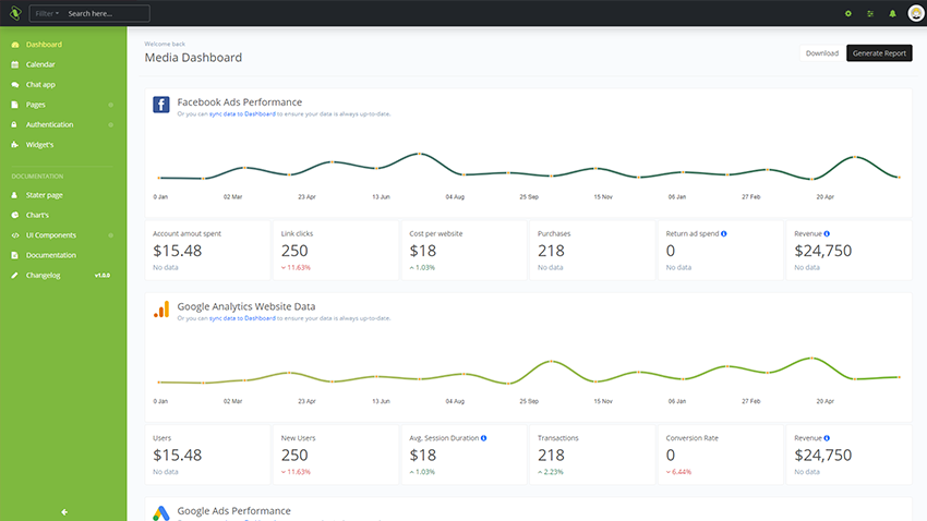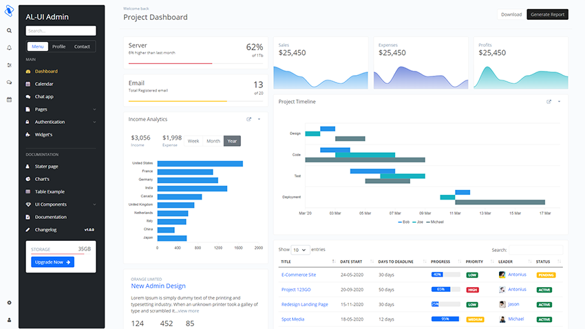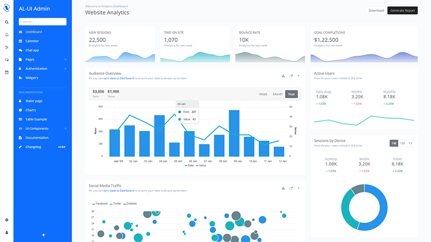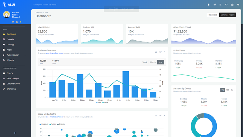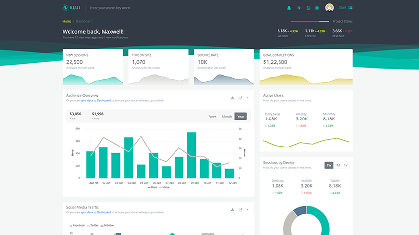 ALUI is a library of widgets created with many third-party libraries you already know and love. Everything is seamlessly integrated into ALUI, creating a new standard in dashboard design.